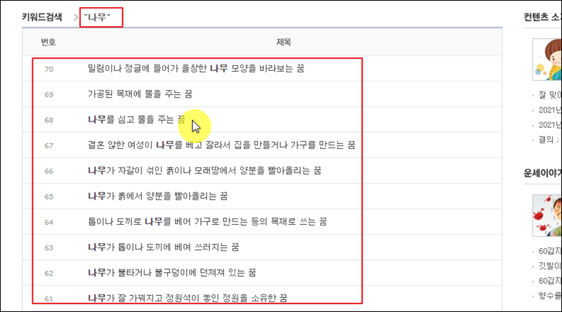 저는 꿈에서 나무가 나타난 경우를 기준으로 해몽 서비스를 이용해 보려고 해요. 밀림이나 정글에 들어가 울창한 나무 모양을 바라보는 꿈, 가공된 목재에 물을 주는 꿈, 나무를 심고 물을 주는 꿈, 나무가 흙에서 양분을 빨아올리는 꿈 등이 있네요. 이 중에서 꿈풀이를 하고 싶은 해몽을 하나 선택하면 돼요.