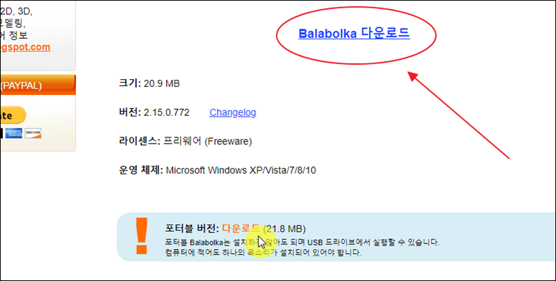 사이트 메인화면에서 화면을 조금 내려보세요. 그럼 Balabolka 프로그램을 다운로드 받을 수 있는 버튼이 있어요. 해당 버튼을 누르면 프로그램 설치 파일을 다운 받을 수 있는데요. 일시적으로 텍스트 음성 변환을 하는 것이라면 포터블 버전을 이용해 보세요. 프로그램 설치 없이 Balabolka의 텍스트 음성 변환 서비스를 사용할 수 있어요.