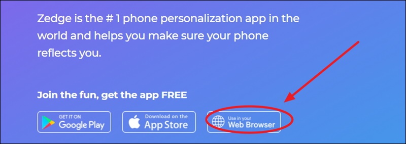 Zedge의 경우 아이폰과 안드로이드폰 전용 어플리케이션을 통해서도 여기서 제공하는 서비스를 이용할 수 있는데요. 단순히 인터넷 상에서 벨소리를 무료로 다운받기 원한다면 Web Browser를 클릭해 주세요.