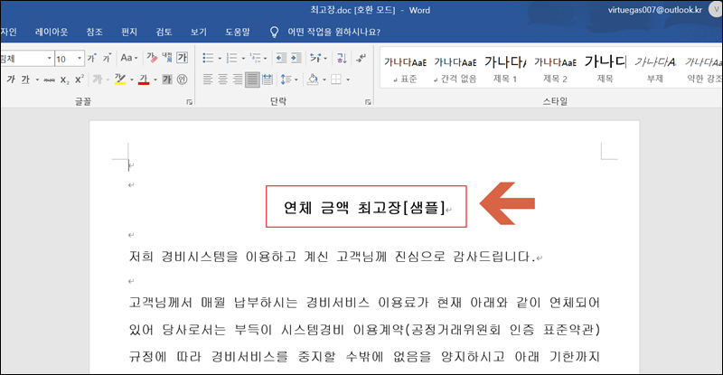 워드 파일로 내용증명 무료서식을 다운 받아 보았어요. 다음과 같이 샘플 버전이기 때문에 내용이 기재되어 있어요. 유사한 목적으로 내용증명을 작성하는 것이라면 일부 내용만 변경해서 발송하면 돼요.