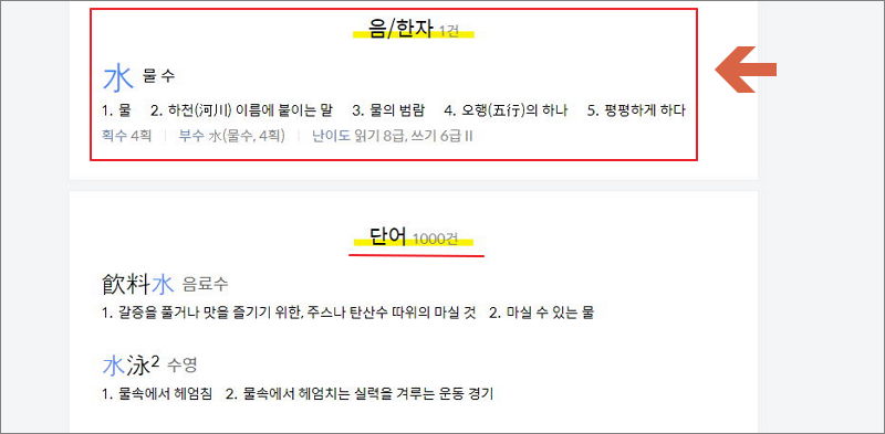 "물 수"가 들어간 단어가 1000건이나 검색되고 있는데요.