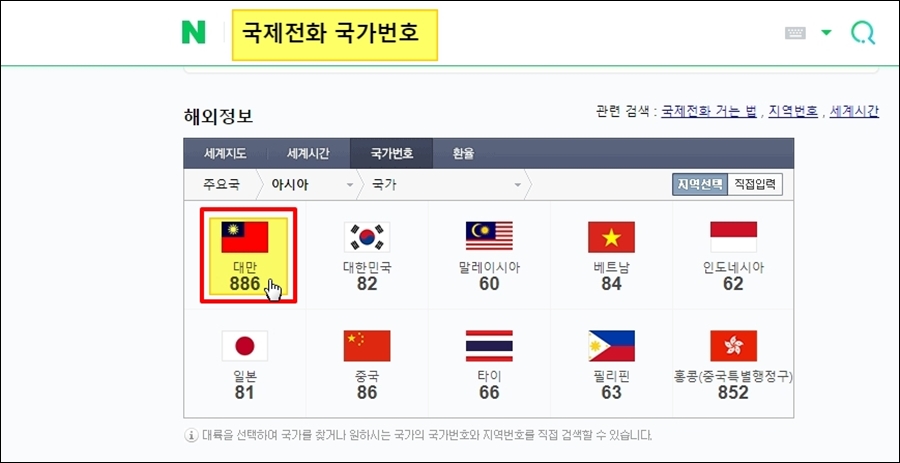 더 많은 나라에 대한 국가번호를 알고 싶다면 네이버에서 "국제전화 국가번호"를 검색하면 됩니다.