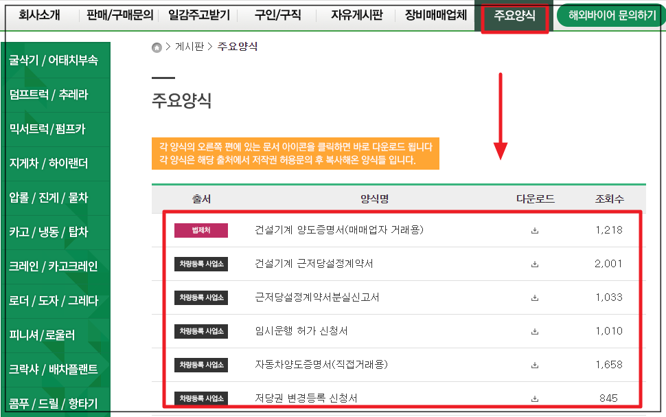 3. 건설 기계를 거래할 때에는 건설기계양도증명서를 작성해야 하는데요. 이와 관련된 양식을 이곳에서 구할 수 있습니다.