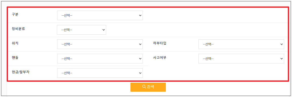 7. 꽤 많은 매물이 검색 결과로 나오기 때문에 세부 조건을 추가하는 것이 좋습니다. 장비 분류, 위치, 핸들, 하부타입, 사고여부 등의 조건을 마음대로 지정해 보세요.