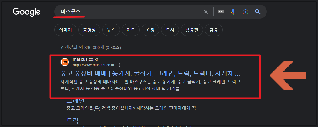 9. 세 번째로는 마스쿠스 중고 중장비 매매 사이트입니다. 이것 또한 그린 중기 매매 상사 못지 않게 많은 매물 정보를 제공하고 있어요.