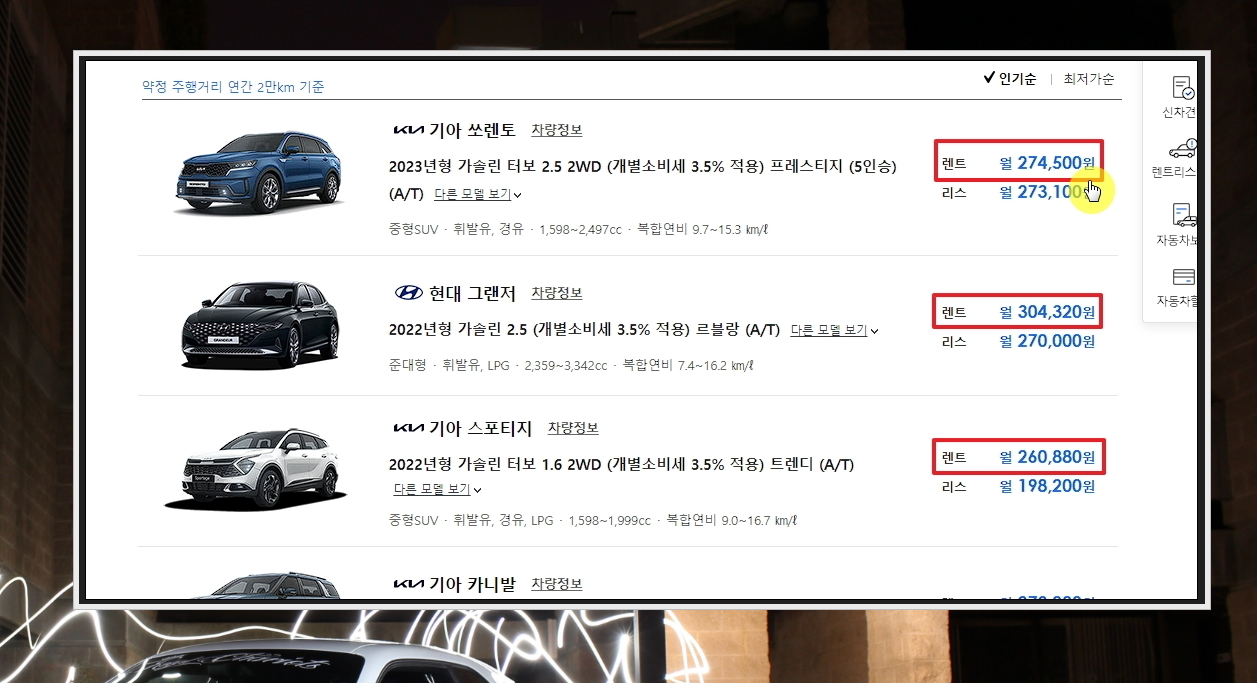 똑똑하게 비교해볼 수 있는 장기렌트카 가격표 활용하기.