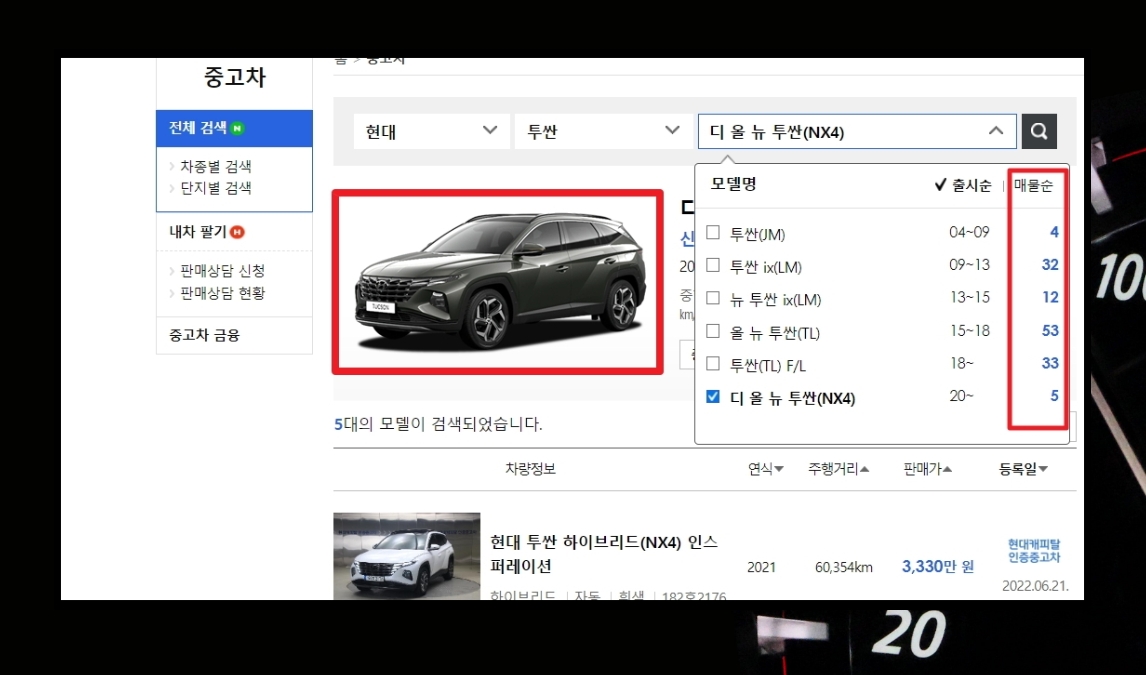 온라인으로 투싼 중고차 가격 시세 살펴보기.