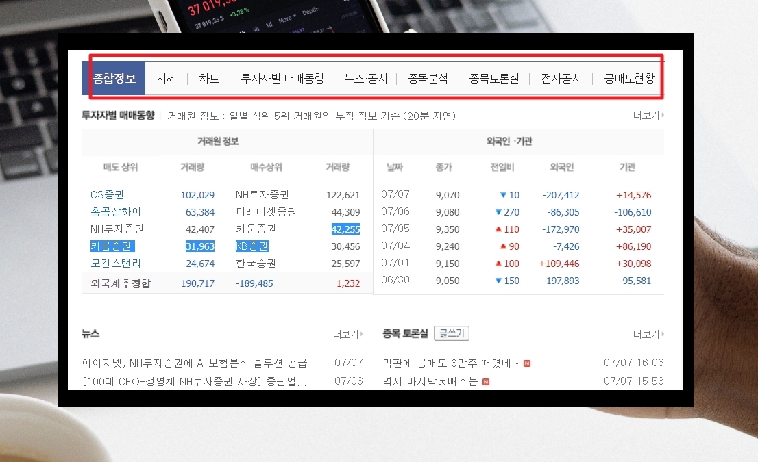 7. 주가가 하락했다고 해서 꼭 투자를 피해야 하는 것은 아닙니다. 오히려 저렴하게 매수할 있는 적기가 될 수도 있습니다. 이러한 것을 판단하기 위해서는 해당 페이지에 있는 종합정보, 시세, 차트, 투자자별 매매동향, 뉴스, 공시, 종목분석 등의 정보를 참고하여 나름의 분석을 진행해 보아야 합니다.