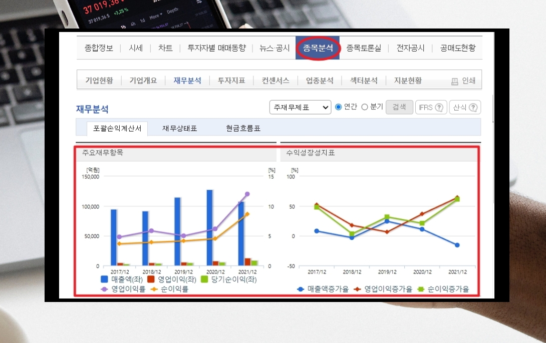 여기에서 매년마다 매출액과 영업이익, 당기순이익이 어떻게 변하였는지 쉽게 확인할 수 있습니다. 해당 정보를 잘 활용하면 종목 선택에 도움이 될 것입니다.