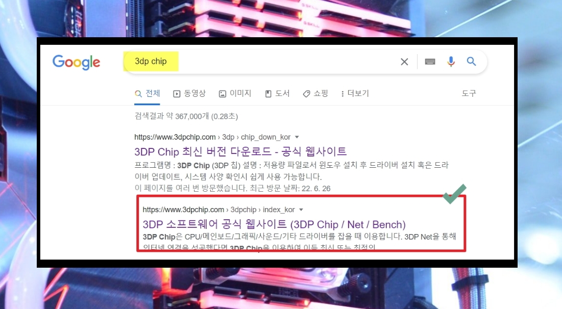 5. 이번에는 프로그램을 이용하여 내컴퓨터 사양 보는 법을 알려 드리겠습니다. 해당 프로그램을 통해 전용 드라이버 찾기와 설치를 할 수 있습니다. 우리가 사용할 소프트웨어의 이름은 3dp chip 입니다. 공식 홈페이지에서 최신 버전 다운 받아야 합니다.