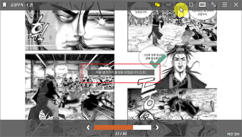 ▼ 화면 상단에 있는 기능 버튼 중에서 AUTO 버튼을 클릭해 보시길 바랍니다. 그럼 자동 넘기기 기능이 활성화 됩니다. 5초에 한 번씩 자동으로 페이지가 넘겨지는 것을 확인할 수 있을 겁니다.