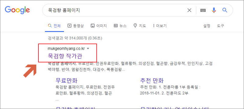 ▼ 검색 사이트를 이용하여 묵검향 홈페이지를 검색해보시길 바랍니다. 그럼 묵검향 작가관이라는 사이트를 쉽게 찾을 수 있을 것입니다. 사이트에 접속해서 어떻게 이용하는지 자세히 알려드리겠습니다.