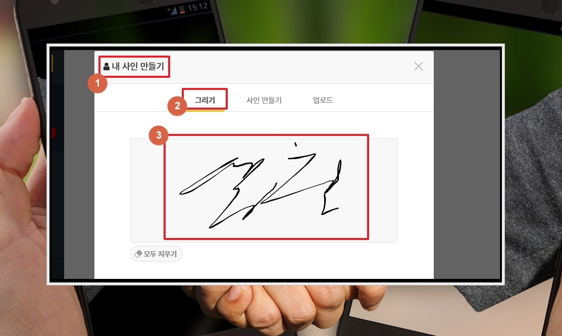 8. 이곳에서 전자 사인 만들기 또한 가능합니다. 마우스로 그려서 사진 이미지를 만들어보시길 바랍니다.