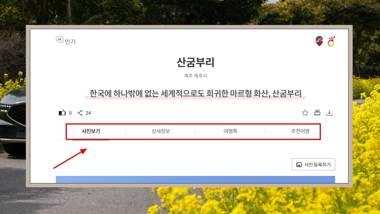새별오름, 휴애리자연생활공원, 산굼부리, 카멜리아힐 등 제가 모르는 곳도 많이 보이는데요.