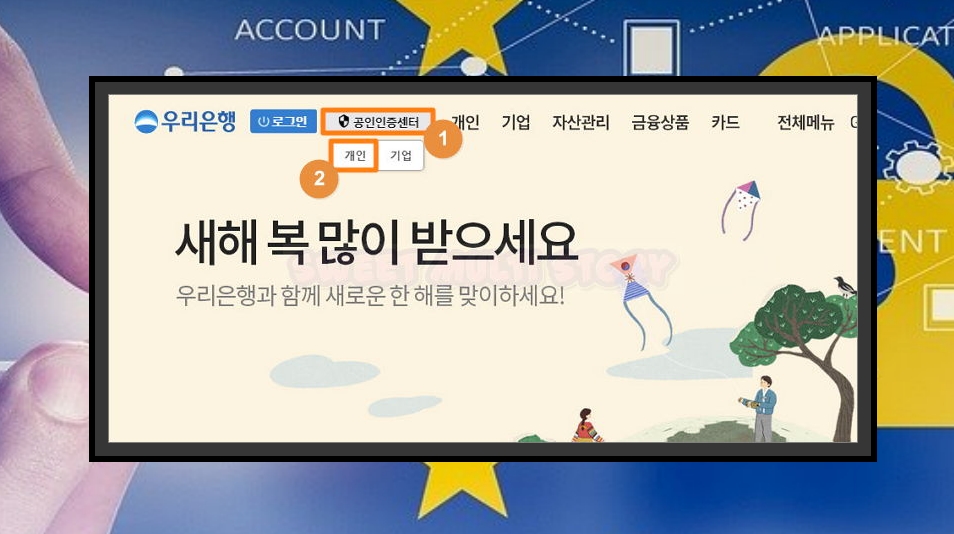 b. 은행 사이트에 접속하면 공인인증센터 페이지에 접속해 주세요. 사업 용도로 사용하는 것이 아니라면 개인을 클릭해 주세요.