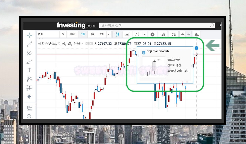 5. 차트를 좀 더 심도 있게 보는 방법이 있습니다. 기술차트를 이용하는 것인데요. 다양한 지표 기능은 물론이고, 추세선 등을 그릴 수 있는 도구가 많이 준비되어 있습니다.