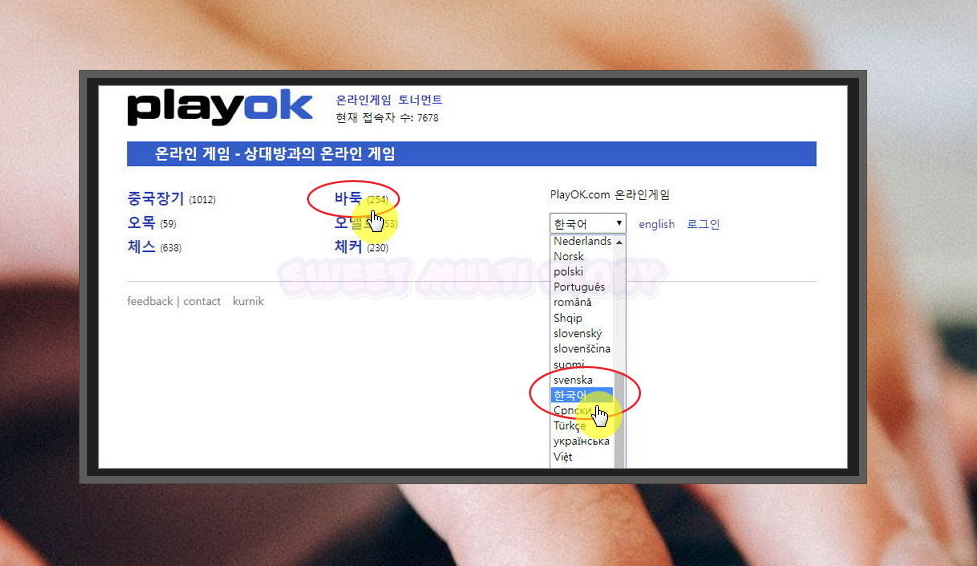 2. Playok에 접속했어요. 사이트에 나온 문구와 같이 상대방과 온라인 게임을 즐길 수 있어요. 중국장기, 오목, 체스, 오델로, 바둑, 체커 이렇게 6가지 게임이 있는데요. 현재 접속자 수가 7678명 인만큼 다른 사람과 함께 게임하기 좋아요. 해외 사이트임에도 한국어로 표시를 할 수 있기 때문에 이용하는 데에 불편함이 없고요.