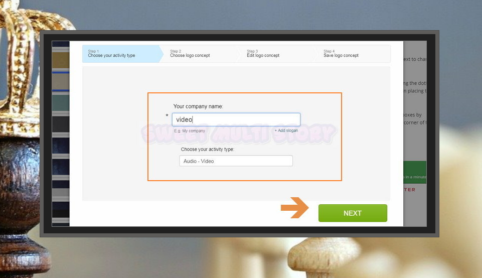 5. 이용법은 간단해요. [Your company name]에 회사명을 입력하고, [Choose your activity type]에 업종을 클릭하여 업종을 선택하면 돼요. 다 하셨으면 [NEXT] 버튼을 눌러보세요.