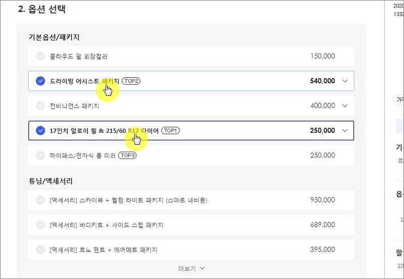 자신이 원하는 모델, 옵션, 세부등급과 이용할 수 있는 판매조건에 따라 차량 구매 비용이 어떻게 되는지 알 수 있습니다. 실제로 구입하기에 앞서 예산을 설정할 때 사용하면 좋습니다.