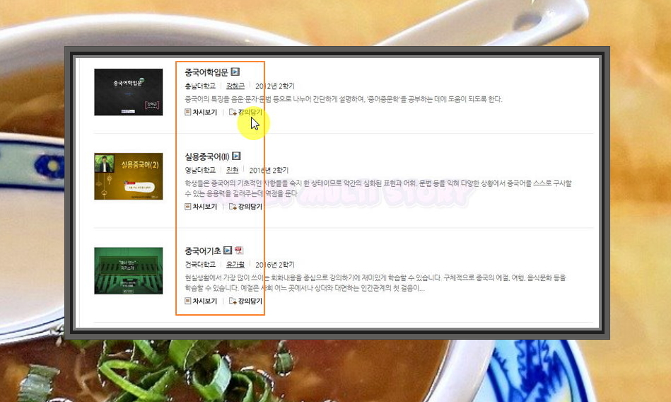 3. 검색을 통해 100여 가지의 중국어 인터넷강의를 찾을 수 있는데요. 성조발음, 기본회화는 물론이고, 비즈니스에 유용한 중국어 강좌도 있어요. 대부분 인터넷 상에서 바로 볼 수 있는 동영상 컨텐츠로 되어 있기 때문에 배우기 좋아요.