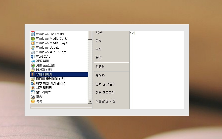 1. 컴퓨터를 켜고 윈도우에 있는 시작 버튼을 눌러주세요. 프로그램 목록을 살펴보면 무비 메이커가 보일 거에요. 말 그대로 영상 제작 프로그램이에요. 이것을 통해 멋진 동영상을 만들 수 있어요.