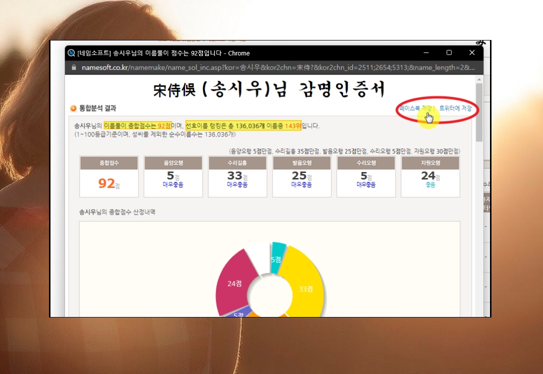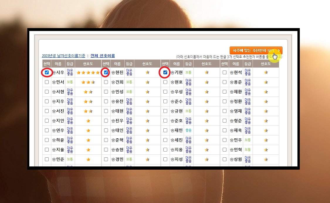 여기에 더하여 성명학과 사주에도 좋은 것을 추려내면 돼요.