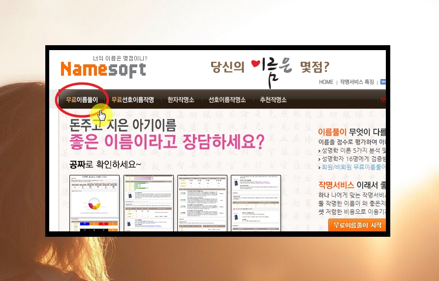 무료 작명 사이트로 유명한 네임소프트를 이용해보려고 하는데요.