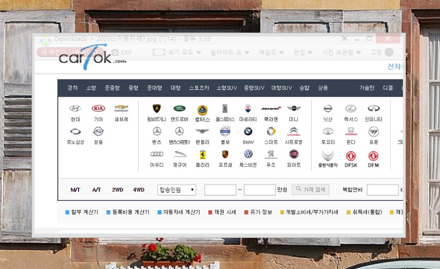 ▲ 홈페이지 메인화면을 보면 브랜드 리스트 아래에 자동차세 계산기가 있어요.
