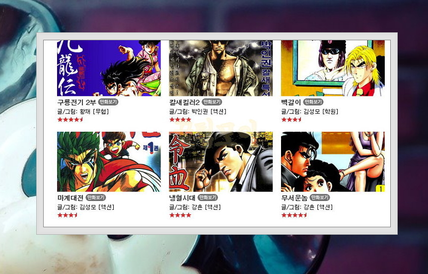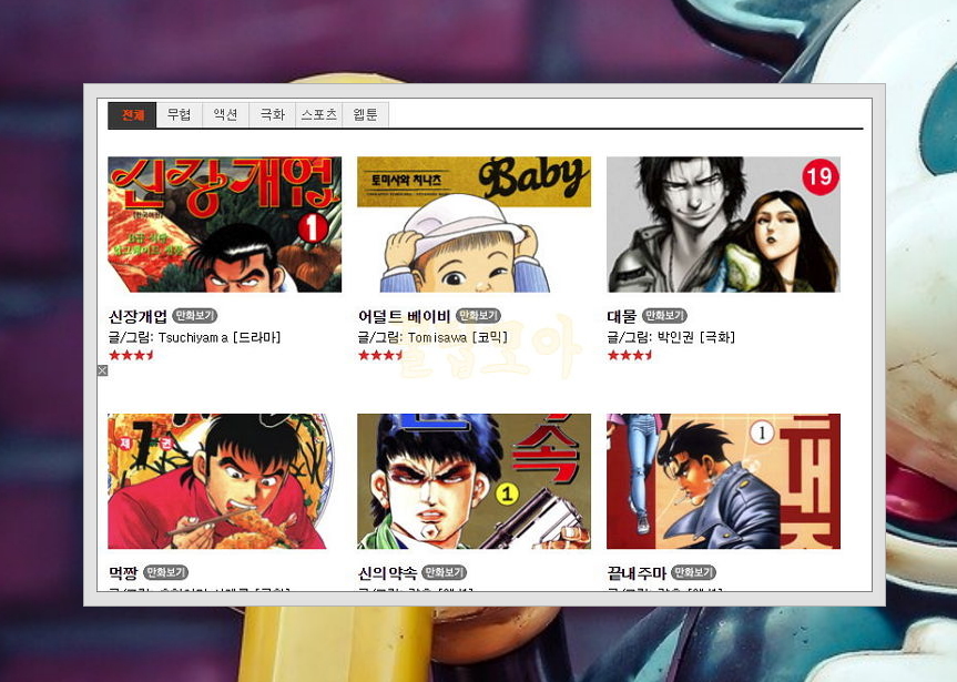 7) 장르에 따라 무협, 액션, 극화, 스포츠, 웹툰으로 나뉘고 있으니 마음에 드는 무료만화를 찾아보세요.