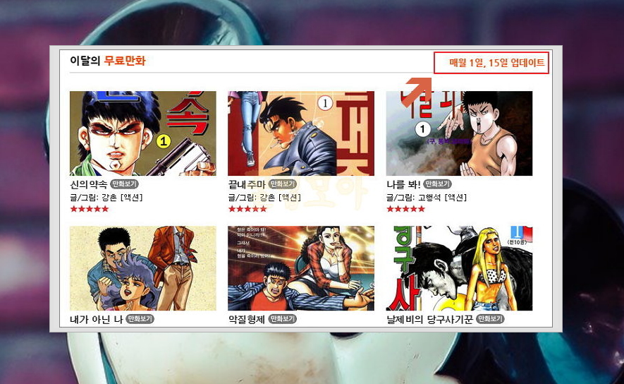 1) 요즘에는 종이로 신문을 보는 사람이 드뭅니다. 그렇기 때문에 스포츠서울을 포함한 대부분의 신문들이 인터넷 사이트를 통해 컨텐츠를 제공하고 있는데요. 컨텐츠에는 '이달의 무료만화'도 포함이 되어 있습니다. 끝까지 볼 수 있고, 보름마다 업데이트가 되기 때문에 정말 좋아요.