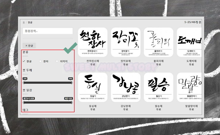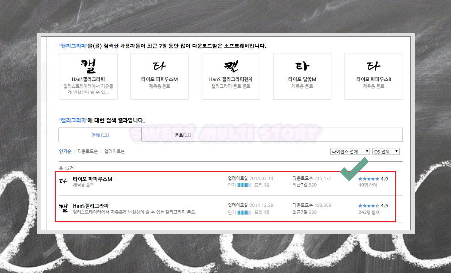 사이트 2곳에서 한글 캘리그라피 폰트 다운 받기.