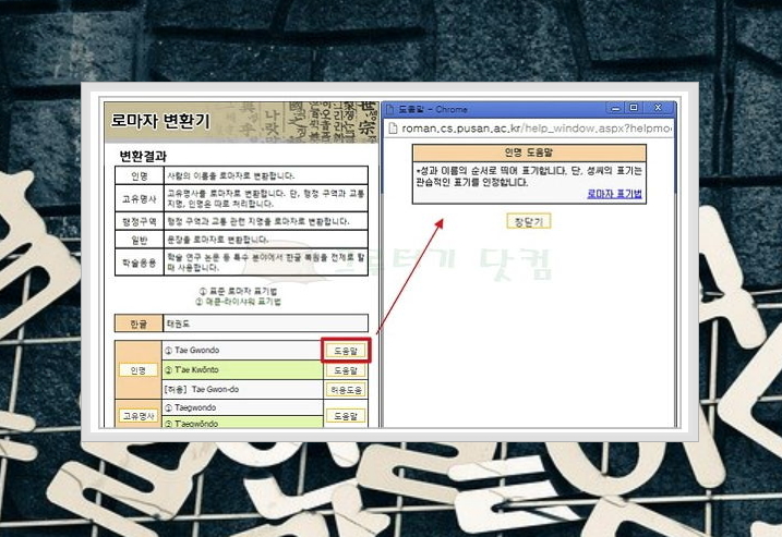 옆에 있는 도움말을 클릭하시면 한글 영어 변환기의 원리에 대해 알 수 있습니다.