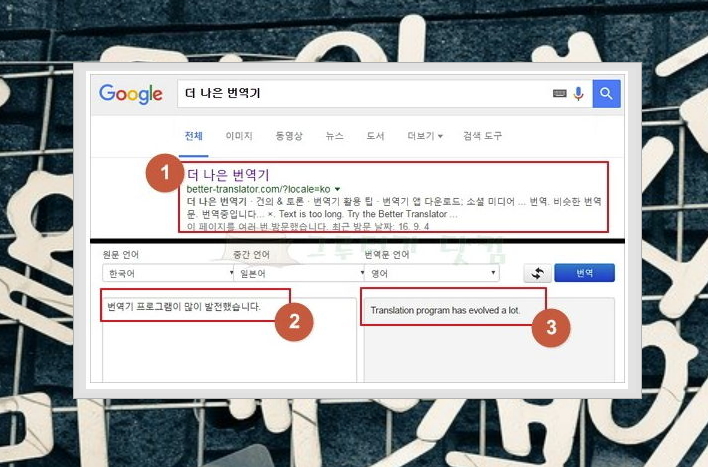 해당 변환기는 한글을 일어로 번역한 결과를 다시 영어로 번역하는데요. 일본어 데이터가 많아서 그런지 결과물이 꽤 매끄럽습니다.