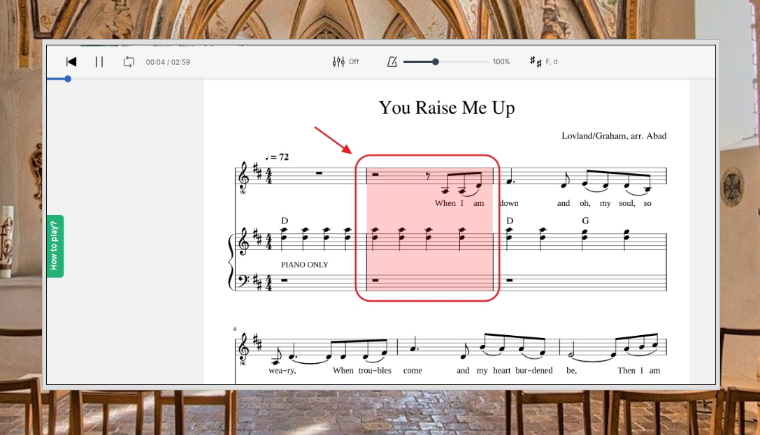 8. 이번에는 "You Raise Me Up"이라는 곡의 악보를 선택했습니다. 당연히 연주 음악 재생도 가능합니다.