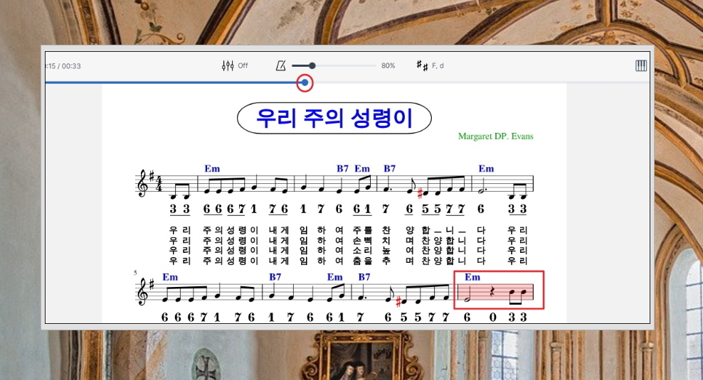 1. 제가 복음성가에 관련된 악보를 찾아보니 유료로만 다운로드 받을 수 있는 곳이 많았습니다. 그래서 무료로 이용이 가능한 서비스가 없는지 찾아보았는데요. 마침 있더군요. 국내에서 많이 불리는 "우리 주의 성령이"라는 곡도 이곳에서 찾았는데요. 다음과 같이 자료를 다운로드 받기 이전에 연주 음악을 재생할 수 있었습니다.