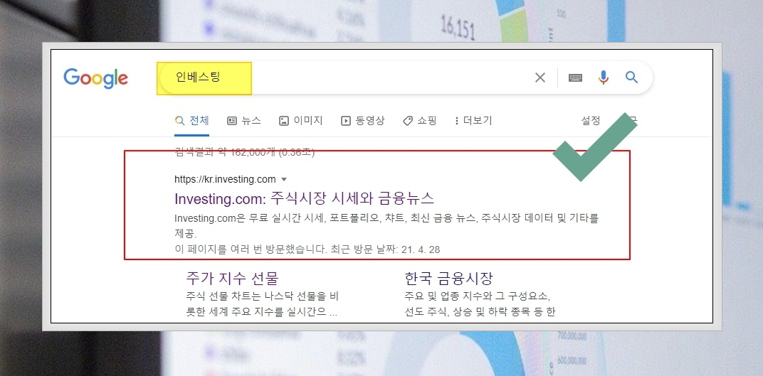 1. 증권사에 가입을 하지 않아도 바로 주식 관련 정보를 얻을 수 있는 곳이 있습니다. 바로 인베스팅 사이트 인데요. 이곳의 경우 국내는 물론이고, 해외 주식시장에 대한 정보가 많고, 서비스 퀄리티 또한 뛰어나기 때문에 많은 사람들이 이용하는 곳입니다.