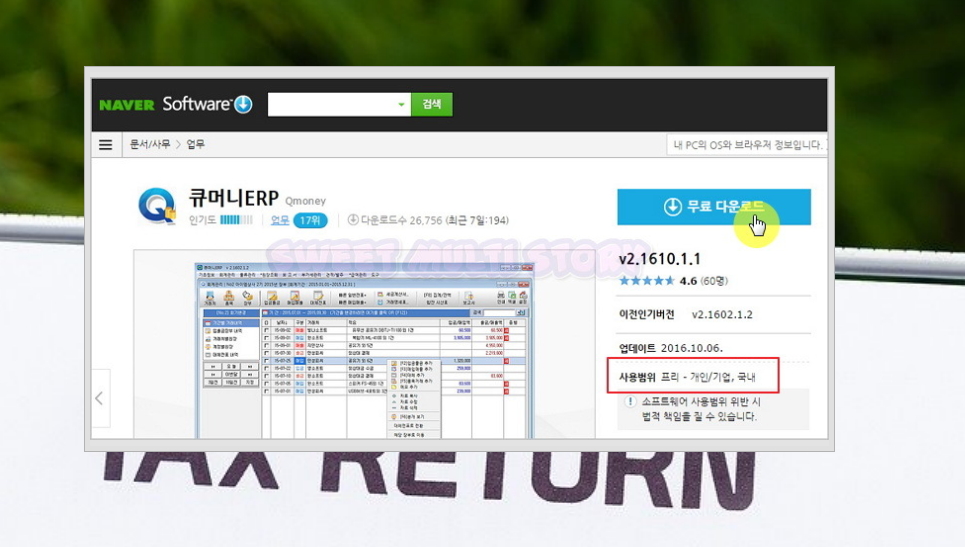 위와 같이 세금계산서 양식을 이용하여 하나씩 인쇄하는 것도 좋지만, 관리하기가 어려운데요. 관리를 수월하게 해주면서 전자 및 종이세금계산서를 쉽게 발행하는 프로그램을 사용하시면 좋습니다. 무료이기 때문에 부담 없어요. 네이버 소프트에서 검색하면 바로 다운로드하실 수 있습니다.