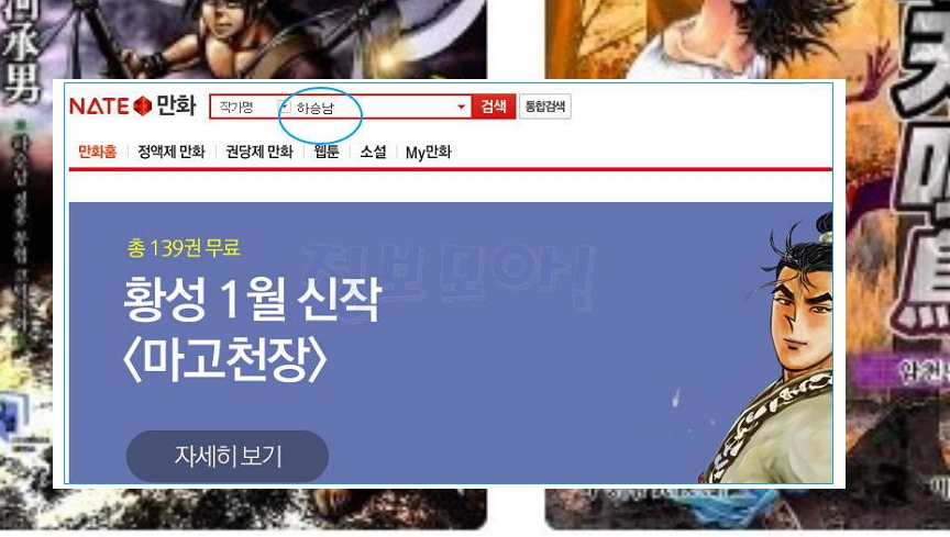 이곳에서 하승남 작가님의 작품을 만나볼 수 있는데요. 검색사이트에서 네이트 만화를 검색하거나 코믹스 네이트닷컴을 인터넷 주소창에 입력하면 됩니다.