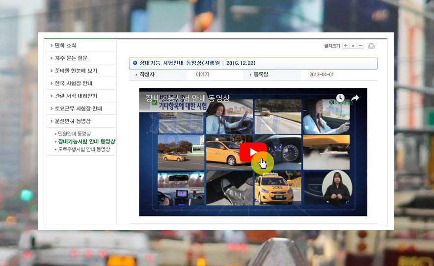1) 운전면허에 대한 민원처리는 물론이고, 다양한 정보를 얻을 수 있는 홈페이지가 있습니다. 바로 도로교통공단 홈페이지인데요. 이곳에서는 개정된 운전면허 장내기능시험 동영상 자료를 제공하고 있습니다. 사이트 주소를 보고 접속해주세요.