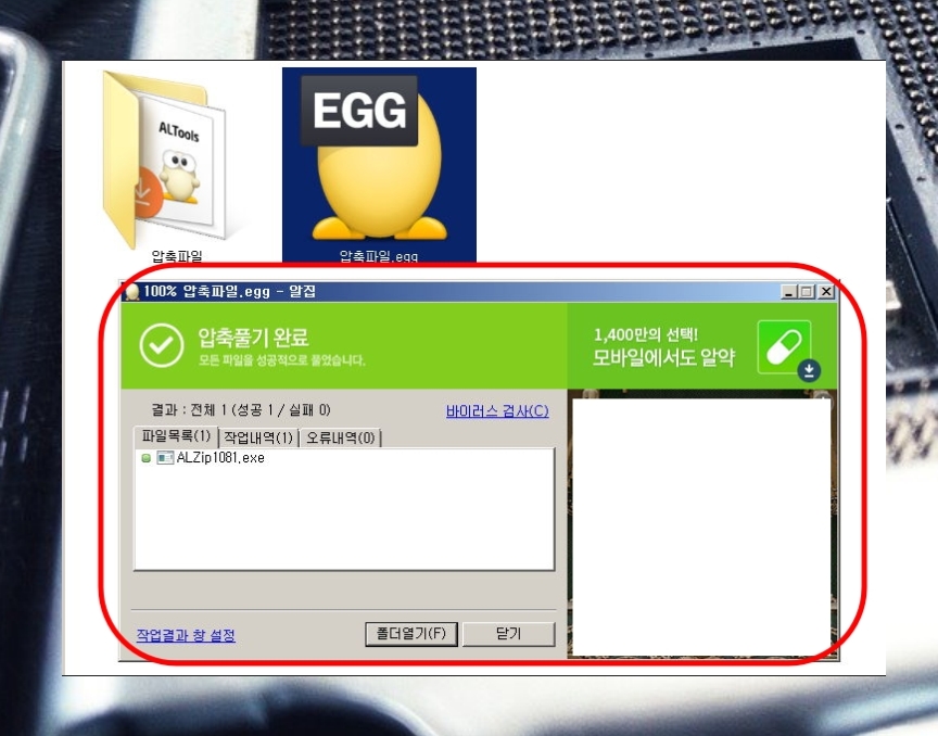 원클릭으로 EGG 압축풀기 따라하기