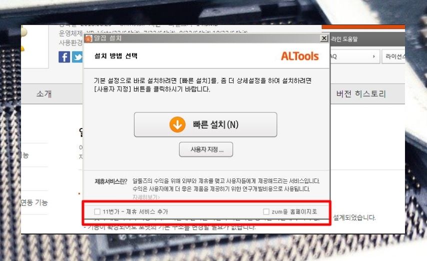 ▲ 설치를 진행할 때에는 제휴서비스를 확인하면서 진행하세요.