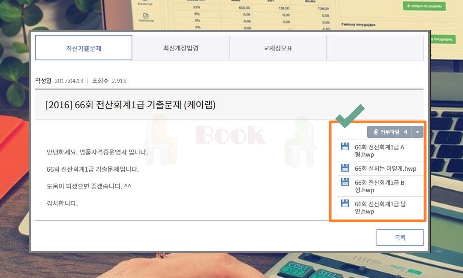 전산회계1급 기출문제 자료 인터넷으로 얻기 기본서 보기와 문제 풀이를 병행해야 합니다. 이번 시간에는 문제 풀이에 좋은 기출문제 자료를 공유해 드리려고 하는데요.