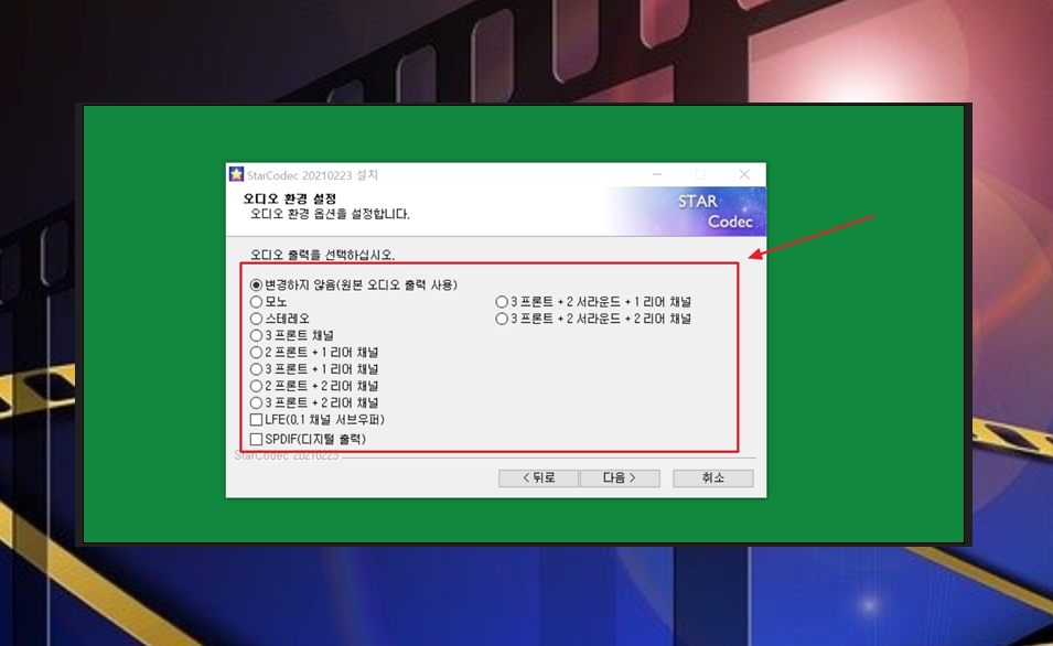 이번에는 오디오 환경에 대한 설정을 진행해야 하는데요. 자신이 사용하는 오디오 출력에 맞게 선택을 해주면 돼요.