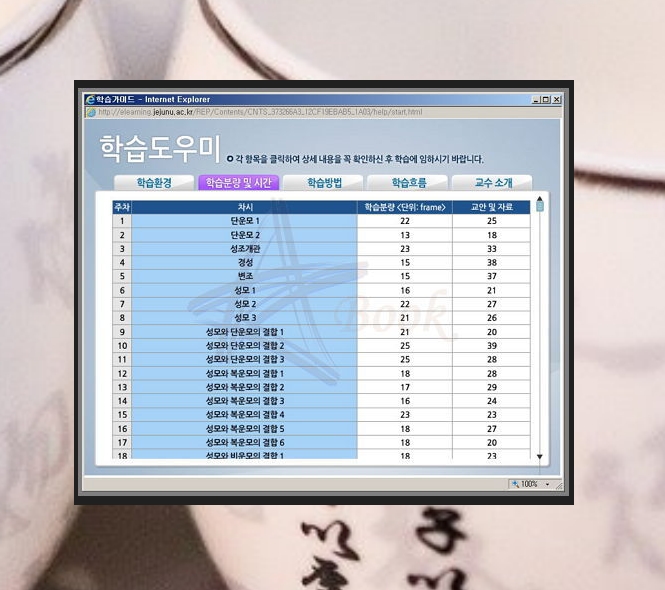 학습도우미를 클릭하면 해당 강좌에 들어 있는 매 차시별 학습분량을 확인할 수 있습니다. 보통 강좌 하나당 한 학기 분량이라고 보시면 됩니다.
