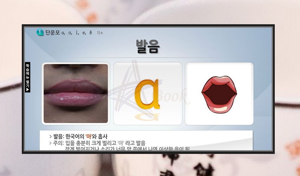 동영상이기 때문에 발음을 공부하는 데에도 전혀 불편함이 없습니다. 입 모양를 보고, 소리를 들으며 따라 하기만 하면 되죠.