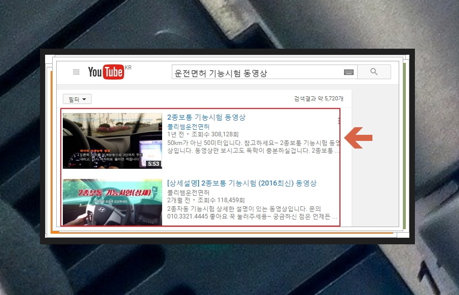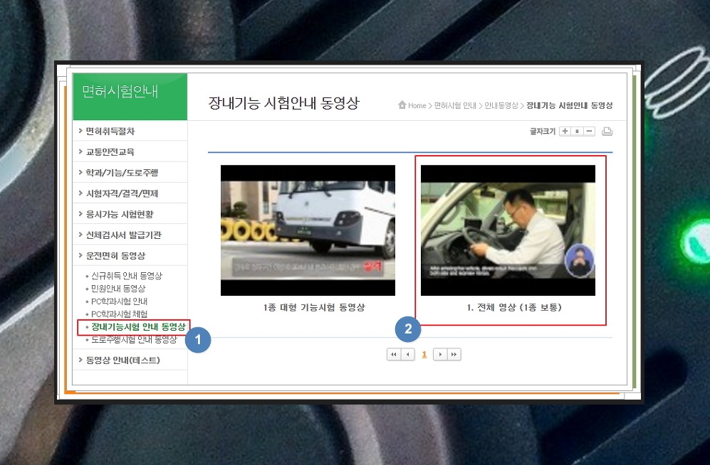 우리가 필요한 운전면허 기능시험 동영상을 선택합니다. (①번 클릭)