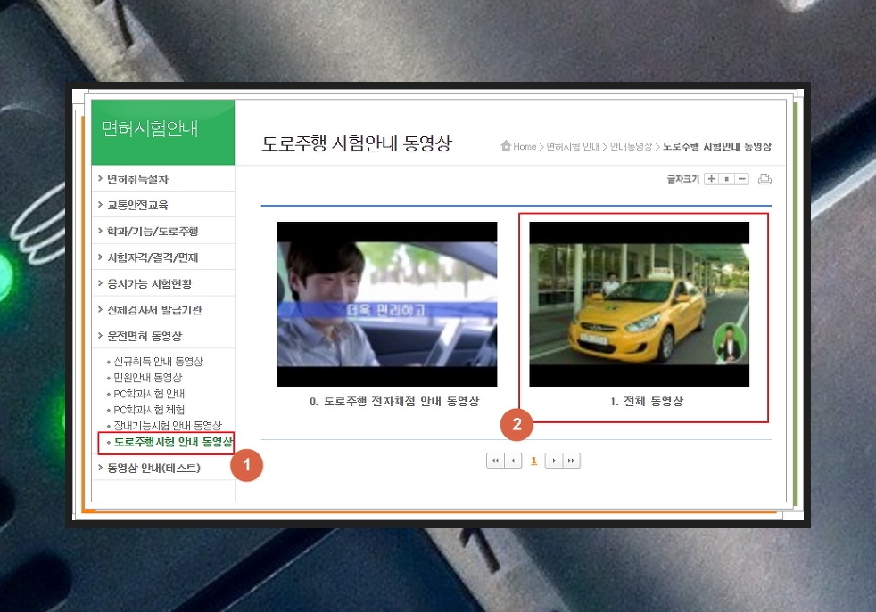 추가적으로 도로주행에 관련된 동영상을 보시고 싶으신 분들은 ①번을 클릭하시면 됩니다.^^