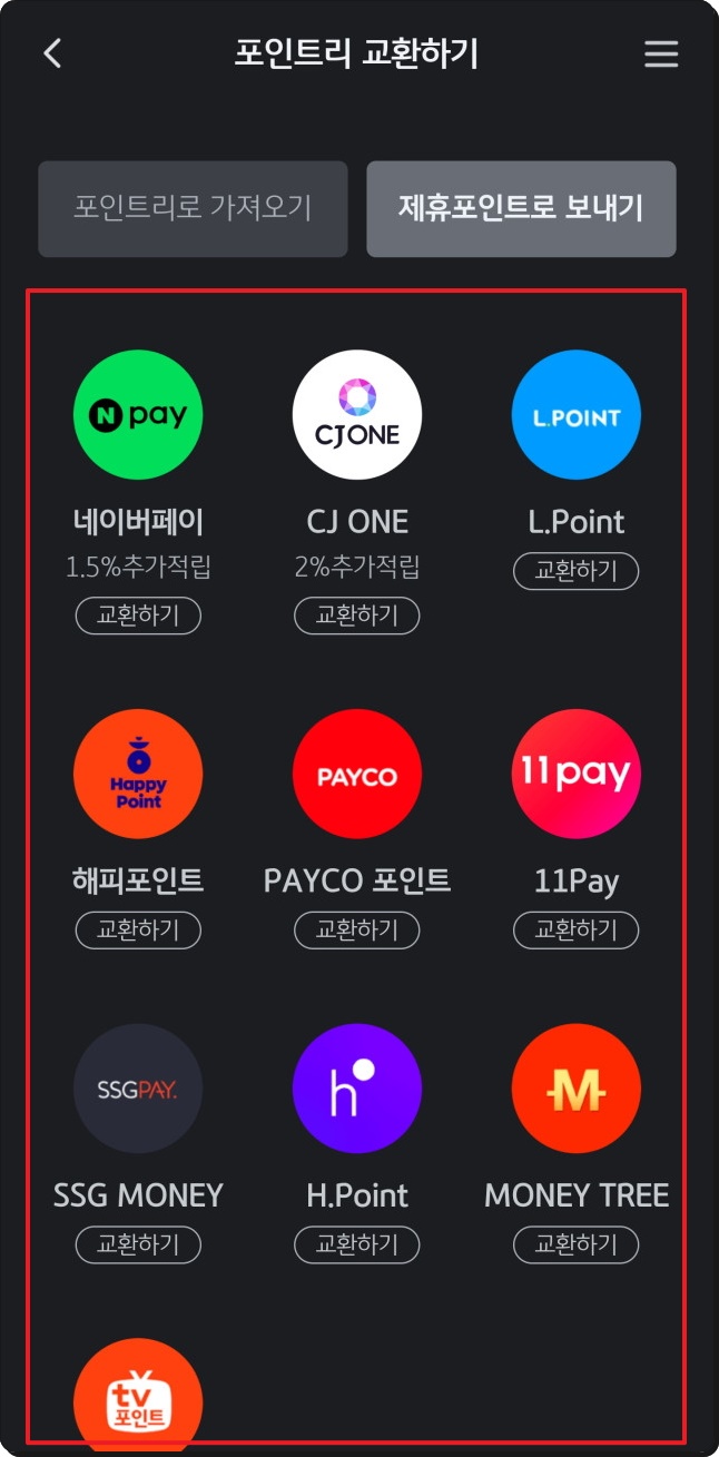 - 교환 및 사용 : 여러 가지 다양한 Point로 바꾸거나 반대로 국민은행 포인트리로 교환할 수 있습니다.