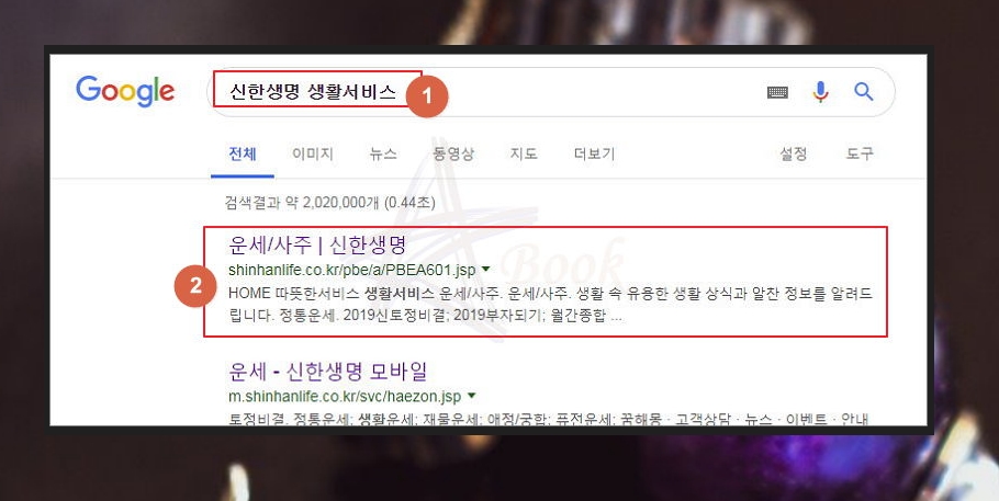 공식 사이트에 접속하는 것보다 좀 더 편하게 우리가 이용하길 원하는 서비스를 찾는 방법을 알려드릴게요. 검색 사이트를 이용하면 되는데요. 구글에서 신한생명 생활서비스를 입력한 후 엔터키를 눌러보세요. 그럼 무료운세와 더불어 생활 속의 유용한 상식과 알찬 정보 페이지에 바로가기 가능해요.