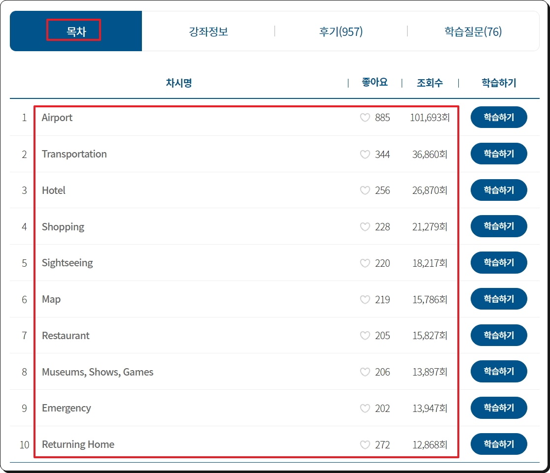 강좌를 선택할 때에는 사이트에서 제공하는 목차를 통해 어떤 것을 공부할 수 있는지 미리 확인해 보세요. 후기를 통해서도 얼마나 괜찮은 영어회화 강좌인지 파악할 수 있습니다. 후기 내용을 보면 무료 강좌임에도 불구하고, 생각했던 것보다 퀄리티가 뛰어남을 알 수 있어요.